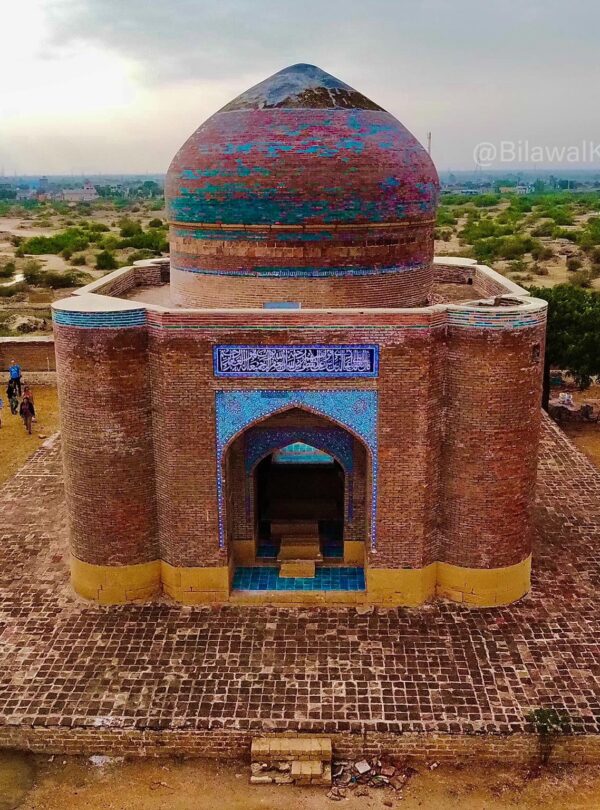 - Massive mud-brick forts and dome-roofed, tiled tombs set in the desert